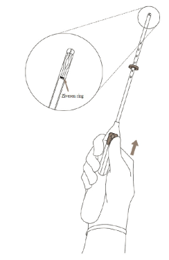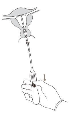 6. Duw het insertiebuisje voorzichtig naar de baarmoederfundus tot de ring tegen de cervix komt. Kyleena zit nu in de fundale positie (Afbeelding 6). |