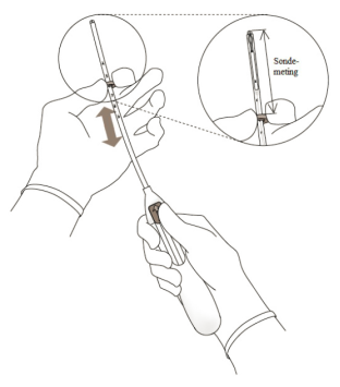 - Steek een uterussonde via het cervicale kanaal tot in de fundus om de diepte te meten, om de richting van de baarmoederholte te bevestigen en om intra-uteriene afwijkingen op te sporen (bv. septum, submucosale fibromen) of een eerder ingebracht intra-uterien anticonceptivum dat niet werd verwijderd. Als u moeilijkheden ondervindt, moet worden overwogen om het kanaal te dilateren. Als dilatatie van de cervix vereist is, kunt u pijnstillers en/of een paracervicaal blok gebruiken.