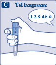 • Tel langzaam tot 6 terwijl u de toedieningsknop ingedrukt houdt. |