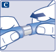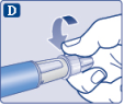 Wanneer de pen moet worden weggegooid, doe dit dan zonder een naald erop volgens de instructies van uw arts, verpleegkundige, apotheker of plaatselijke overheden. | |