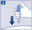 • Houd de pen met de naald omhoog gericht. |