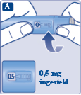 • Draai aan de dosisinstelknop om 0,5 mg in te stellen. |