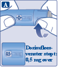 Alleen het dosisafleesvenster en de dosisaanwijspijl geven aan dat 0,5 mg is ingesteld. | ||
