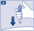 • Steek de naald in uw huid op de manier die uw arts of verpleegkundige u heeft laten zien. |