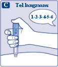 • Tel langzaam tot 6 terwijl u de toedieningsknop ingedrukt houdt. |
