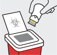 Doe de gebruikte voorgevulde pen na gebruik meteen in een naaldcontainer.