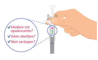 Controleer altijd of het geneesmiddel helder tot opalsecent, kleurloos tot lichtbruin is, vrij is van deeltjes en niet is verlopen (over de datum). Gebruik het geneesmiddel niet als het niet helder tot opalsecent, kleurloos tot lichtbruin is, deeltjes bevat of is verlopen.