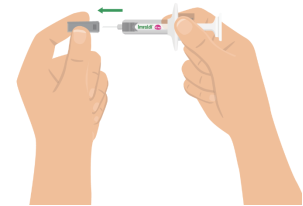 Als u het naalddopje verwijdert voordat u klaar bent om te injecteren, mag u het naalddopje niet terugplaatsen. Hierdoor kan de naald buigen of beschadigen. U kunt uzelf per ongeluk prikken of geneesmiddel verspillen.