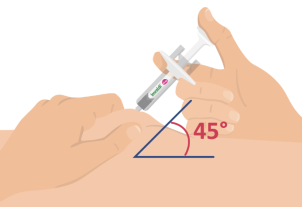 Knijp zachtjes in de huid en breng de naald helemaal in de huid in een hoek van 45 graden.