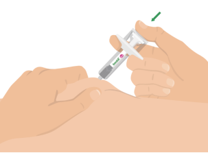 Kies bij selectie van een injectieplaats voor een gebied dat niet onlangs is gebruikt om pijnlijkheid en blauwe plekken te voorkomen. - Duw de zuiger langzaam naar beneden: