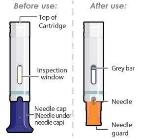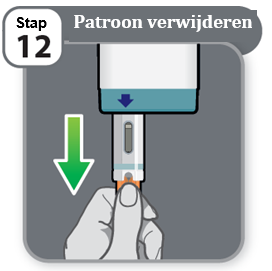 - Gooi de gebruikte patroon direct weg in een afvalbakje geschikt voor scherpe voorwerpen, zoals aangegeven door uw medische zorgverlener of apotheker en in volgens lokale regelgeving op het gebied van gezondheid en veiligheid.