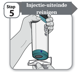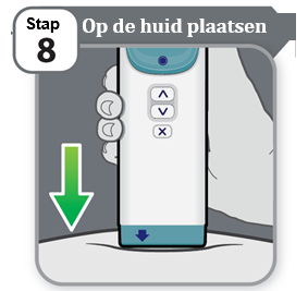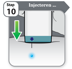 - Houd het apparaat tegen uw huid en wacht terwijl het medicijn wordt geïnjecteerd.