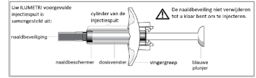 Ilumetri 200 mg oplossing voor injectie in voorgevulde spuit.