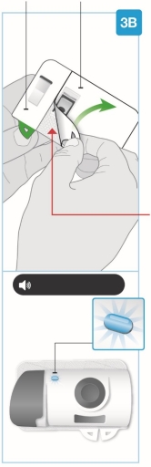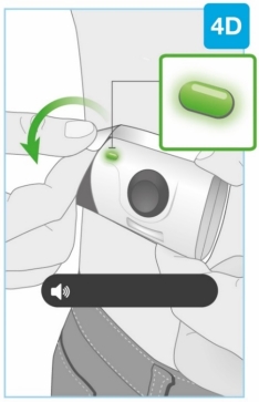 - Raak de startknop niet aan totdat u de on-body injector met daarin de patroon op uw huid heeft geplaatst en klaar bent om de injectie toe te dienen