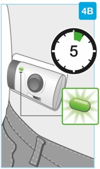 - Zorg dat de on-body injector niet nat wordt door water of andere vloeistoffen