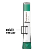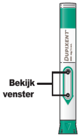 Bekijk het geneesmiddel door het venstertje van de voorgevulde pen.