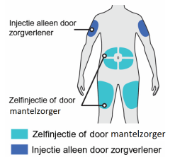 - Kies voor elke injectie steeds een andere injectieplaats.