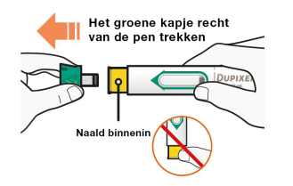 Na het verwijderen de groene kap niet terug op de voorgevulde pen doen.