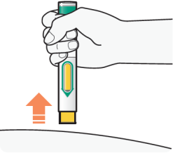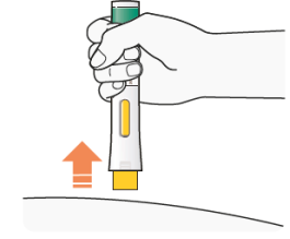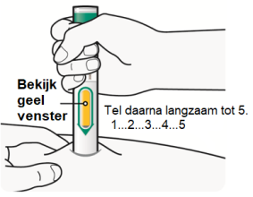Duw de voorgevulde pen stevig tegen uw huid tot u de gele naaldbeschermer niet meer kunt zien, en houd hem daar.