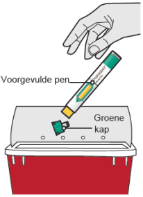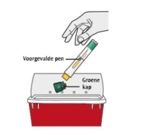 - De groene kap niet terug op de voorgevulde pen plaatsen.