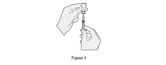 - Neem de dop van de injectieflacon (zie figuur 3).