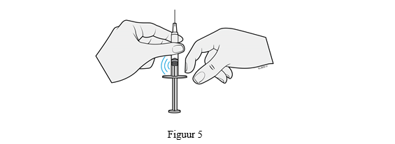 - Als er luchtbelletjes zijn, tik dan zachtjes tegen de zijkant van de spuit totdat de luchtbelletjes boven in de spuit zijn gekomen (zie figuur 5).