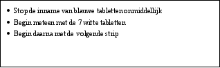 De witte tabletten bevatten geen werkzame stoffen en worden ook wel placebotabletten genoemd.