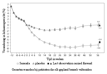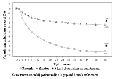 In een klinische studie uitgevoerd bij adolescenten van 12 tot 18 jaar met obesitas werden 125 patiënten blootgesteld aan Saxenda gedurende 56 weken.