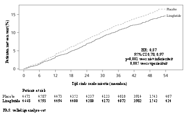 Het percentage patiënten dat ten minste één episode van klinisch significante hypoglykemie meldde, was hoger met liraglutide (1,6%) vergeleken met placebo (0,8%). Tijdens het onderzoek traden geen ernstige hypoglykemische episodes op.