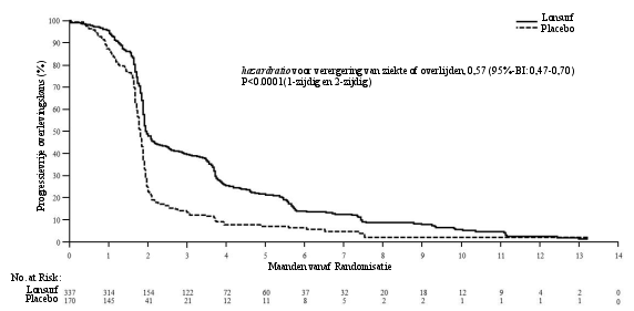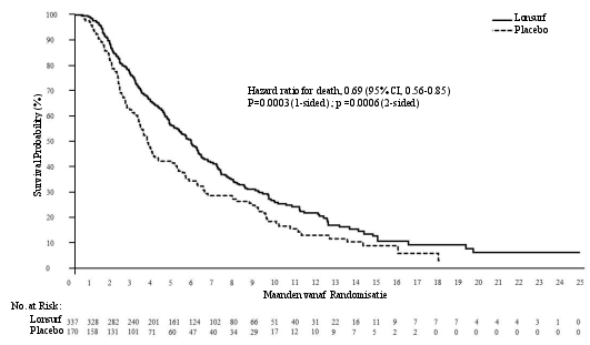 Lonsurf is geïndiceerd in combinatie met bevacizumab voor de behandeling van volwassen patiënten met gemetastaseerd colorectaal carcinoom (CRC) die eerder twee kankerbehandelschema’s hebben gekregen, waaronder chemotherapie op basis van fluorpyrimidine, oxaliplatine en irinotecan, anti-VEGF-middelen en/of anti-EGFR-middelen.