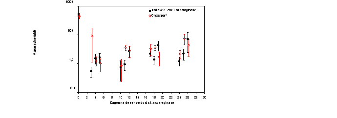 Niet bekend: verhoogd bloedureum, antistoffen tegen pegaspargase, plaatjestelling verlaagd, hyperammoniëmie | |