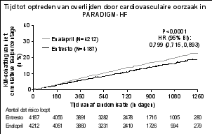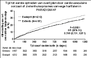 In PARADIGM-HF werden hyperkaliëmie en serumkaliumconcentraties > 5,4 mmol/l gemeld bij respectievelijk 11,6% en 19,7% van de patiënten die behandeld werden met sacubitril/valsartan en 14,0% en 21,1% van de patiënten die behandeld werden met enalapril.