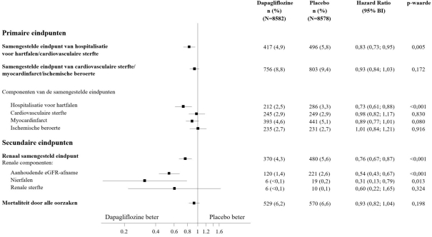k Gerapporteerd in de studie naar cardiovasculaire uitkomsten bij patiënten met diabetes type 2 (DECLARE). Frequentie is gebaseerd op jaarlijks percentage.
