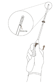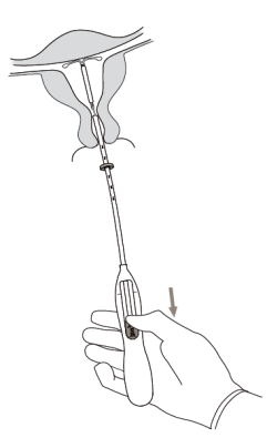 4. Terwijl u de glijder in de verste positie houdt, steekt u het insertiebuisje door de cervix tot de ring ongeveer 1,5-2,0 cm van de baarmoederhals verwijderd is (afbeelding 4). |