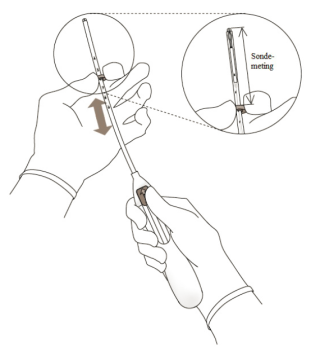 3. Hou de glijder in de verste positie, plaats de bovenrand van de ring op het niveau die overeenstemt met de gesondeerde meting van de diepte van de baarmoeder (afbeelding 3). |