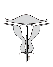 6. Duw het insertiebuisje voorzichtig naar de baarmoederfundus tot de ring tegen de cervix komt. Kyleena zit nu in de fundus (afbeelding 6). |
