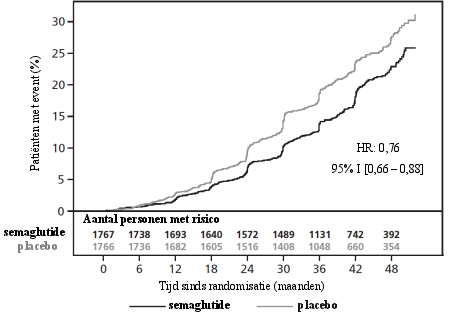 De incidentie van het staken van de behandeling vanwege bijwerkingen was 6,1% en 8,7% voor patiënten behandeld met respectievelijk semaglutide 0,5 mg en 1 mg, versus 1,5% voor placebo. De meest frequente bijwerkingen die leidden tot het staken van de behandeling waren gastro-intestinaal van aard.