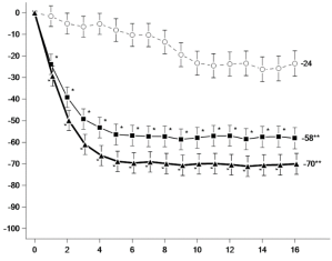 - De laagste effectieve dosis die nodig is voor aanhouden van de respons moet worden gebruikt.