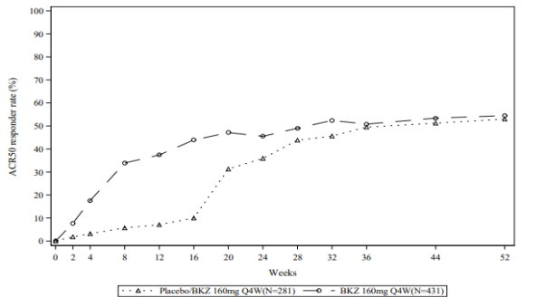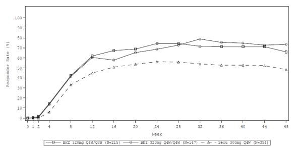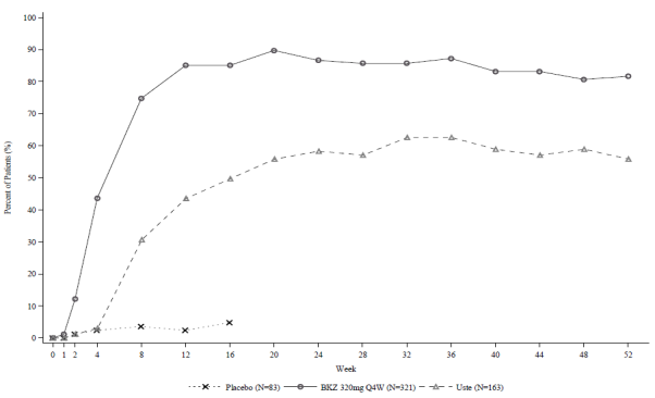 BKZ 320 mg Q4W = bimekizumab elke 4 weken; UST = ustekinumab. Er werd gebruik gemaakt van NRI.