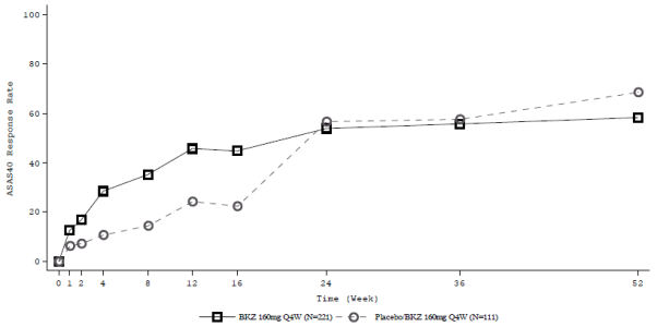 Ongeveer 44% van de patiënten met AS die tot 52 weken met bimekizumab werden behandeld volgens het aanbevolen doseringsschema (160 mg elke 4 weken) had antilichamen tegen het geneesmiddel. Van de patiënten met antilichamen tegen het geneesmiddel had ongeveer 44% (20% van alle met bimekizumab behandelde patiënten) antilichamen die werden geclassificeerd als neutraliserend.