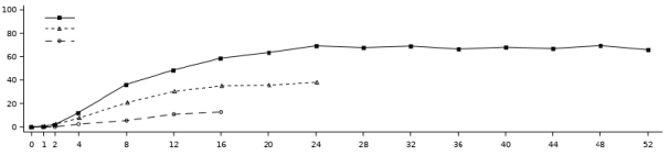 Als een patiënt na 24 weken behandeling geen verbetering vertoont, moet beëindiging van de behandeling worden overwogen. De respons van de patiënt op de behandeling moet regelmatig beoordeeld worden.