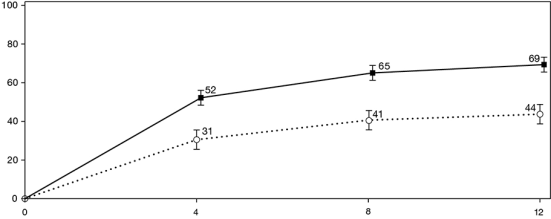 Als een patiënt na 24 weken behandeling niet gereageerd heeft, dient stopzetten van de therapie te worden overwogen.