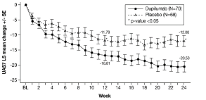 Tijdens de behandeling optredende eosinofilie (≥ 5.000 cellen/mcl) werd in onderzoek AD-1539 waargenomen bij 8,4% van de met dupilumab behandelde patiënten en bij 0% van de met placebo behandelde patiënten, waarbij de mediane aantallen eosinofielen daalden tot onder de baselinewaarde aan het einde van de behandelingsperiode.