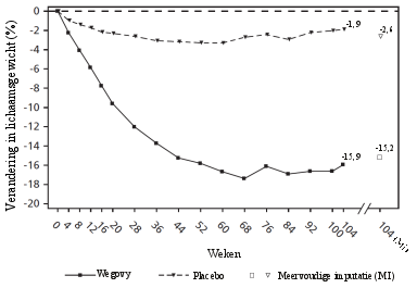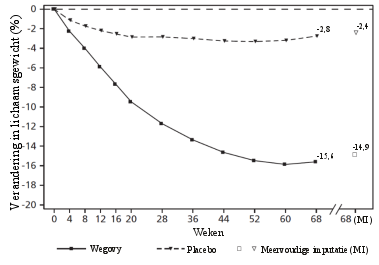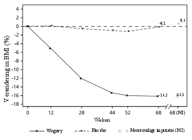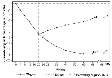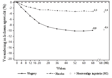 Wegovy is geïndiceerd als aanvulling op een caloriearm dieet en meer lichaamsbeweging ten behoeve van gewichtsbeheersing, waaronder gewichtsverlies en op gewicht blijven, bij volwassenen met een aanvankelijke Body Mass Index (BMI) van
