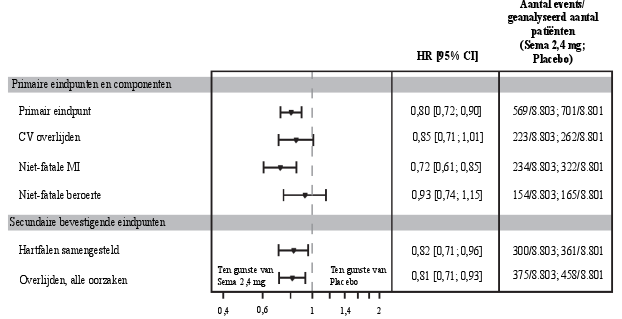 In de SELECT- en SUSTAIN 6-studies was het bijwerkingenprofiel bij volwassenen met vastgestelde cardiovasculaire ziekte, vergelijkbaar met dat bij fase 3a-studies voor gewichtsbeheersing.