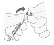 Naald bevestigen | 7. Bevestig een 30G x ½″ steriele injectienaald stevig op de spuit door deze strak op de Luer-Lock te draaien (zie Figuur 4). |